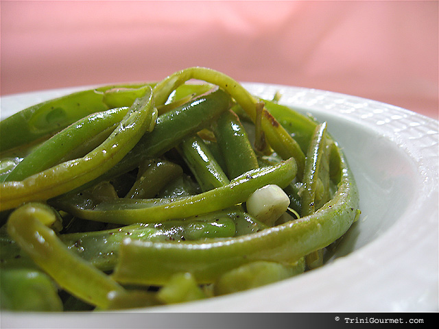 Prepare a dressing from the rest of the ingredients and pour over the beans while they are still warm.